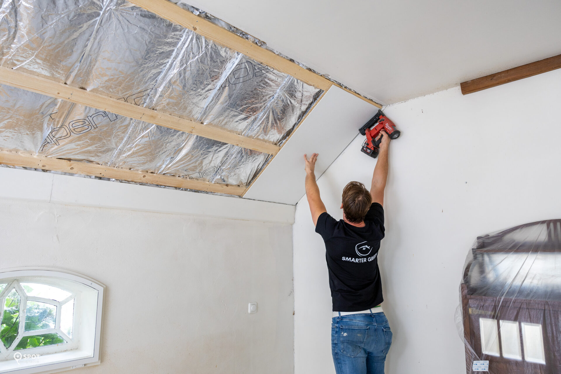 Is een complete dakrenovatie niet nodig en ligt je dakbedekking er nog prima bij? Dan is buitenisolatie misschien een beetje overdreven. Je dak na-isoleren aan de binnenzijde is dan een prima optie, veel minder ingrijpend.
